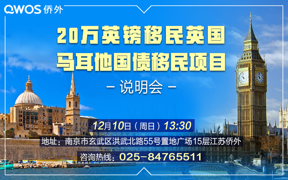 【江苏侨外 12.10】英国移民、马耳他移民说明会