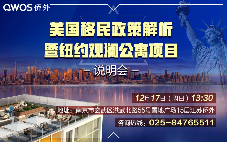 【江苏侨外 12.17】美国移民政策解析暨纽约观澜公寓项目说明会