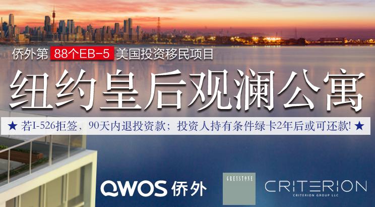 由侨外出国携手美国名列前茅大型金融企业规模的独立EB-5发起机构Greystone睿石集团推出的纽约皇后观澜公寓项目最近进入售卖高峰期。投资人投资此项目将获得一定的年收益,算下来,相当于投资人仅花40万美金就可以完成投资移民美国的梦想。