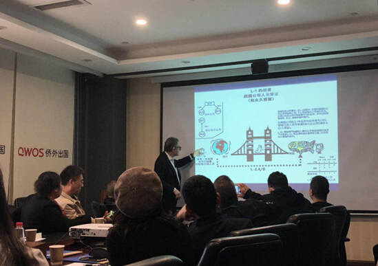 活动开始后,首先由David Hirson介绍了EB-1C的情况,主要介绍了EB-1C的申请条件以及侨外在项目选择上的严谨性。 紧接着,由侨外出国美国项目部经理侯昕怡小姐展示了2005年至今侨外成功走完全程的项目,每一个数据都非常真实,具有说服力。然后她着重介绍了EB-1C跨国高管移民和L1签证的要求。整场演讲的内容特别详细,在场的投资人听得聚精会神。