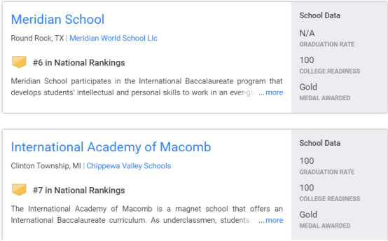 以下是排名6-10的高中,分别是:玛瑞丹中学、国际马科姆学院、皮奥里亚基础中学、全球教育学院、托马斯杰斐逊科学与技术中学。