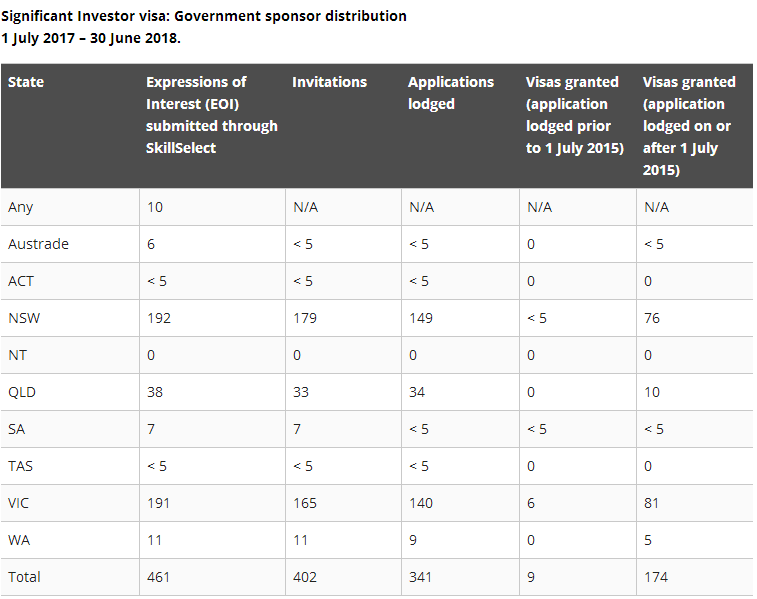根据澳洲移民局更新数据显示,在2017年7月1日至2018年6月30日这一财年中,澳洲移民局接收到的402份EOI申请中,新州、维州的申请人数分别为192、191,超总额的80%以上。此外,著名的黄金海岸所在地昆士兰州也吸引了38位投资人的申请,而盛产葡萄酒、小麦、奶制品,有着“鱼米之乡”美称的南澳大利亚州则收到了7份申请。