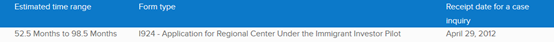 3. I-924申请的审理时间为52.5—98.5个月,可查询案件的日期为2012年4月29日: