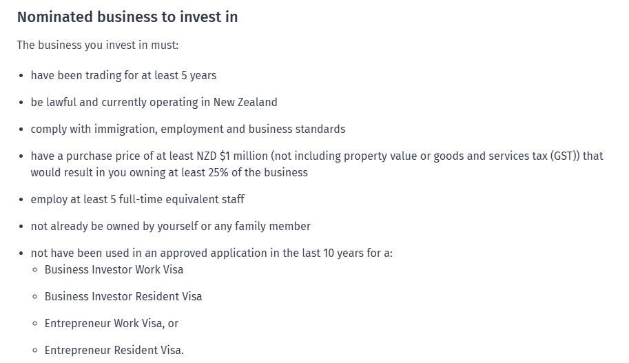 · 具备相应商业经验,例如:曾拥有一家雇佣至少5名全职员工的企业;或企业年营业额达到100万纽币;
