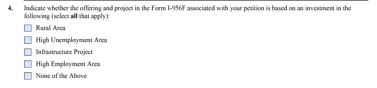 【在递交I-526E申请时,可在申请表上同时勾选“乡村”和“高失业地区”】