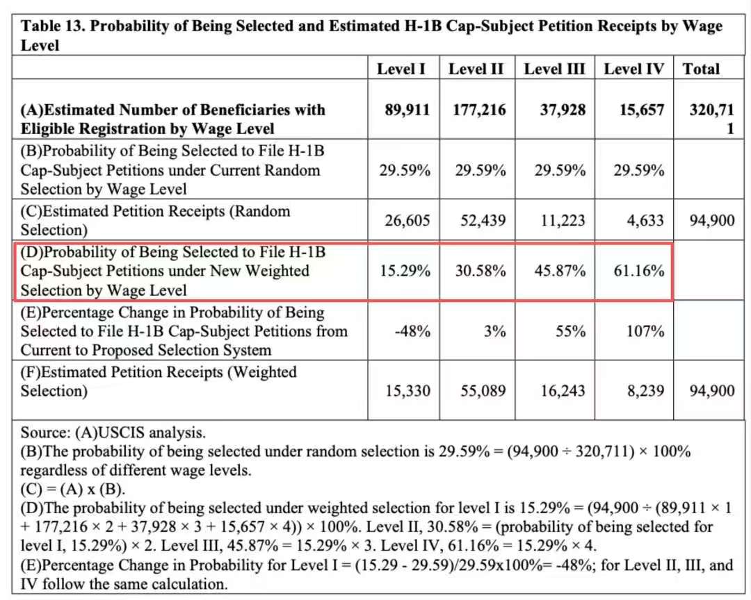 这意味着Level 2、Level 3和Level 4申请人的中签率将高于原有机制,而Level 1 的中签概率则大幅降低。根据移民局预估,新规执行后,Level 1受益人在中签者中的占比将比改革前下降约48%。