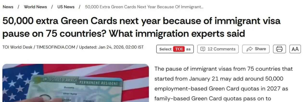 关注特朗普政府近期对75个国家实施的移民签证暂停令,尽管这令相关国家的赴美路径受阻,却可能为全球其他地区的职业移民带来一项意料之外的“配额红利”——