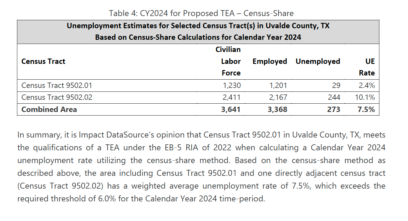 侨外独家得州矿场项目双重资格由多份权威文件共同证实。初步证据已随 I-956F申请提交,后续又从独立经济咨询公司获得了经核实的第二次的意见。两次的分析报告均明确确认项目在两类别的合格性。