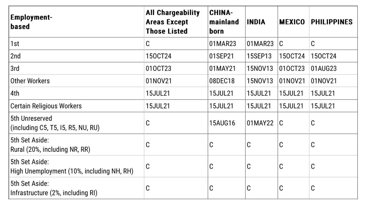 此外,EB-2类别的表A排期仍为2021年9月1日,表B则停留在2022年1月1日,当前无变化。