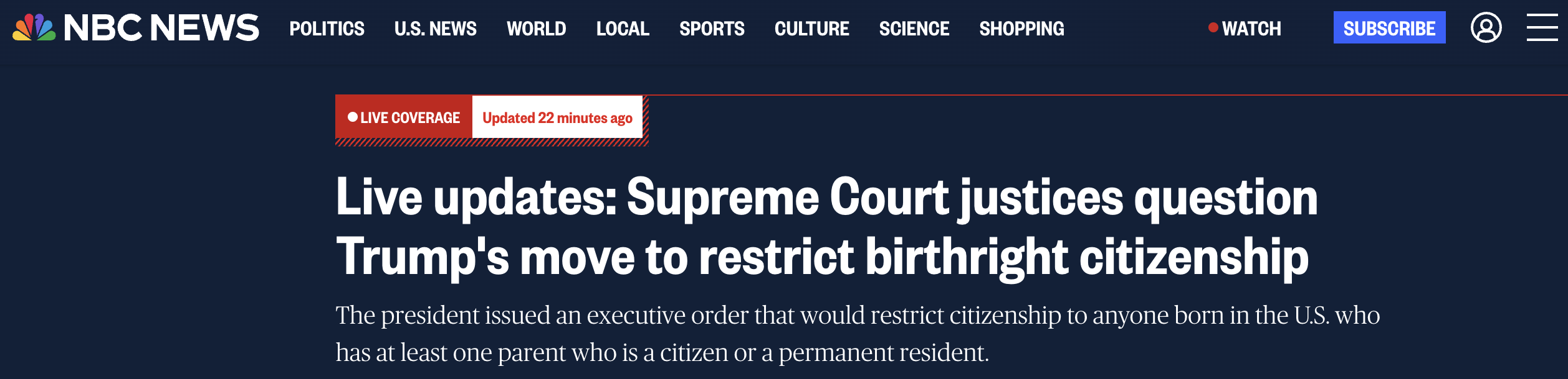 从庭审情况看,无论保守派还是自由派大法官都对这一行政令的合法性提出质疑,似乎不利于特朗普,特朗普中途离场,随后在社交媒体怒批美国出生公民权政策 "愚蠢",并指责最高法院 "表现不佳",称自己任命的法官 "令人尴尬"。