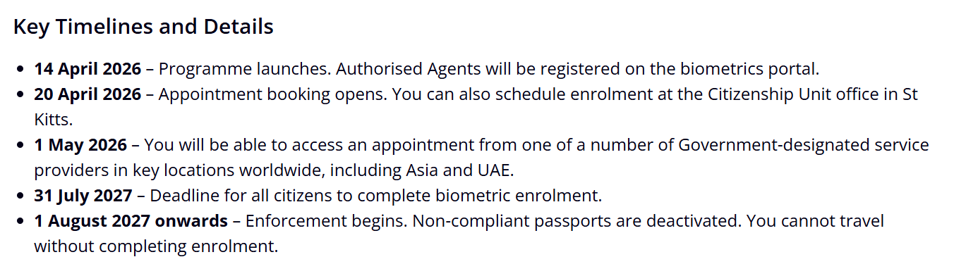 · 新递交申请人自2026年4月14日起,所有新提交的投资入籍申请,必须在公民纸核发前完成生物识别信息录入。