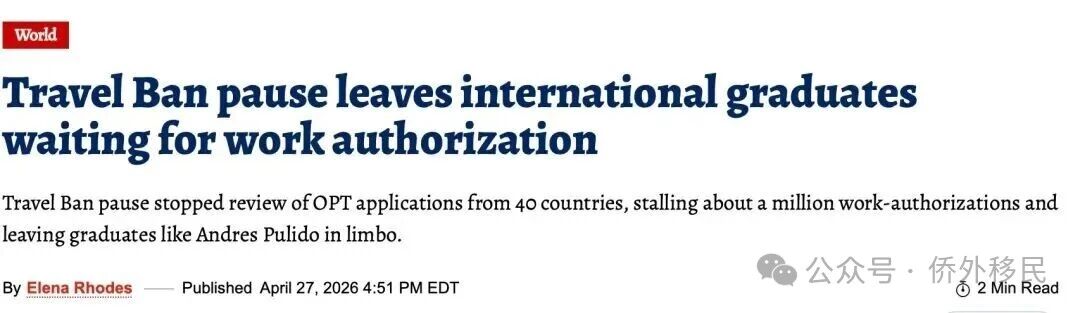 对于计划春季毕业后即刻入职、开启美国职场生涯的国际学生而言,此次政策变动无疑是沉重打击。